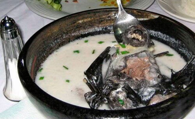 No la come Batman, es un platillo muy típico en Filipinas y es como cualquier sopa con verduras, con el murciélago dando vueltas.