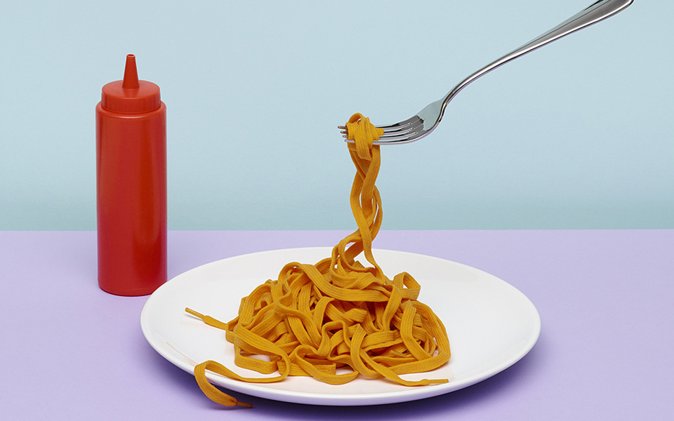 Este fotógrafo muestra extrañas propuestas gastronómicas: hot dogs hechos con globos, pasteles de arena o cordones de zapatos convertidos en espaguetis.