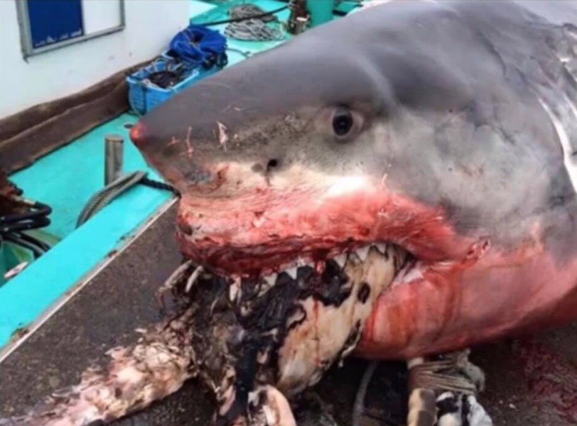 Lo que parecía una exótica cena para un gran tiburón blanco, resultó en el bocado que le quitaría la vida. Y es que intentó tragarse nada más y nada menos que ¡una tortuga marina!