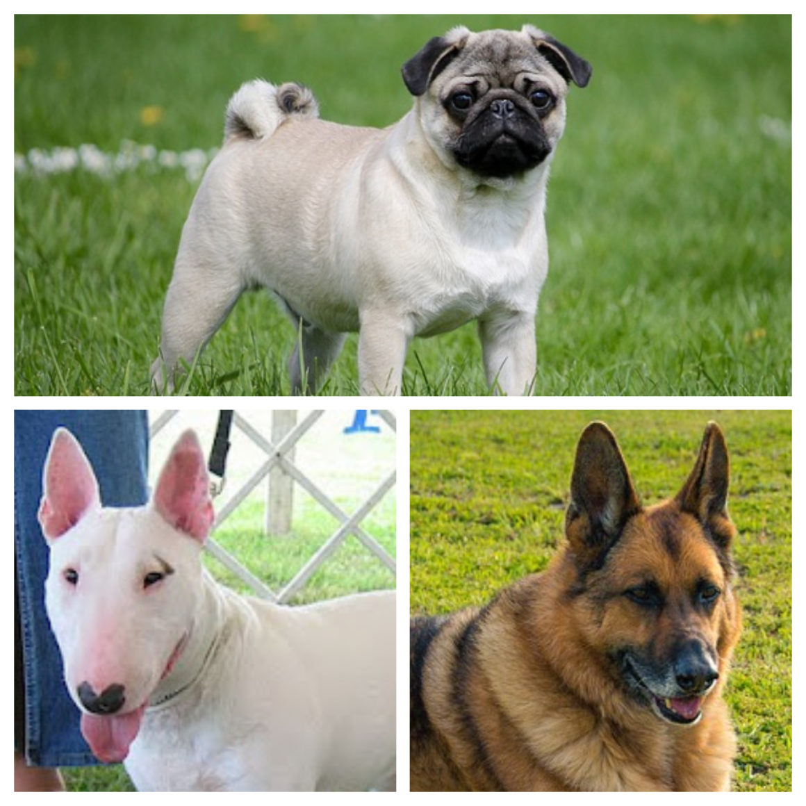 Perros “Pugs”, “Pastor Alemán”, “Bull terrier inglés”