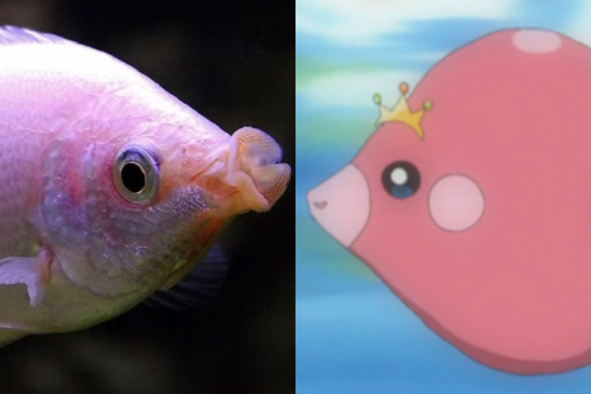 Este adorable Pokemón tiene su origen en Tailandia. Se trata del gurami besador. Pero no te dejes engañar por su apariencia, pues su boca está diseñada para morder.