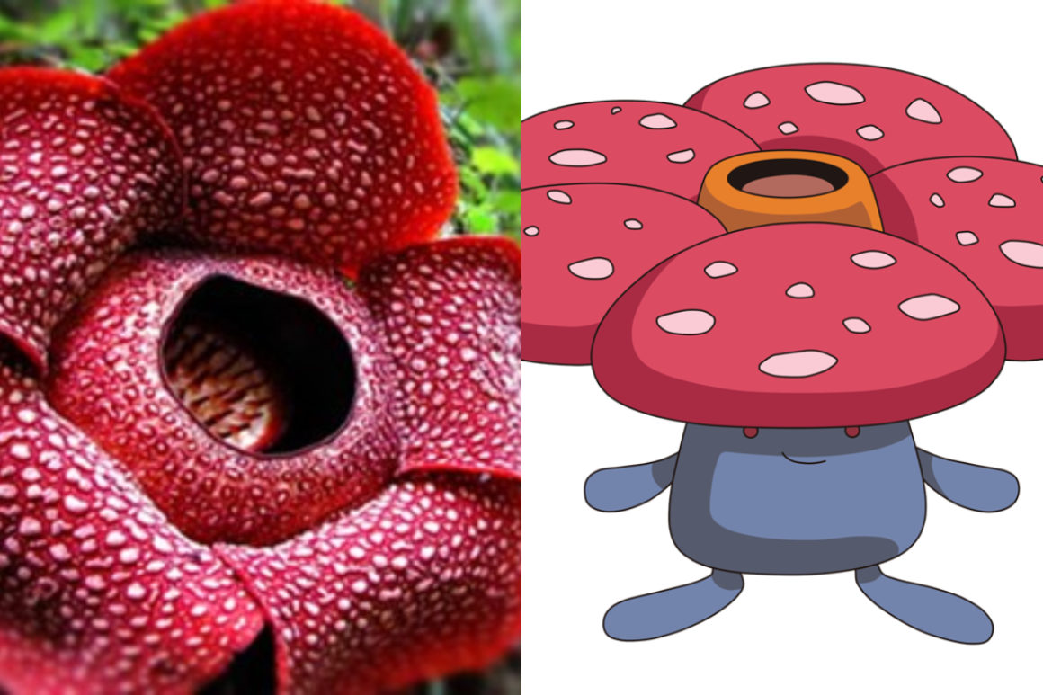 Vileplume viene en tamaño natural, pues en la vida real es una planta enorme que tienen el récord como la flor más grande del planeta: la rafflesia arnoldii.