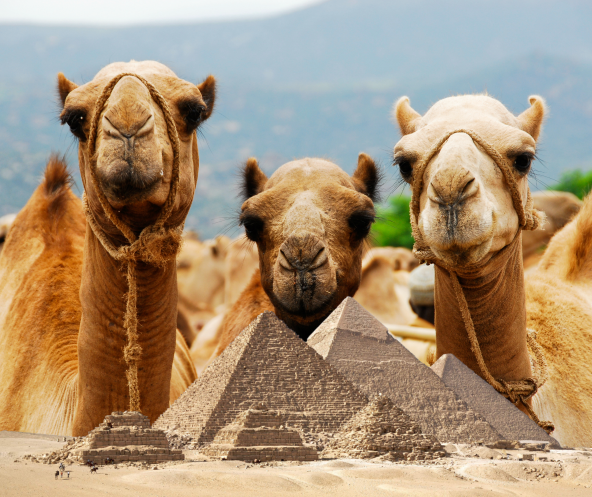En Egipto utilizan a los camellos como medio de transporte y como atracción turística. Tienen el don de soportar mucho tiempo sin agua y recorrer largas distancias, esto es debido a que beben hasta 150 litros en pocos minutos.