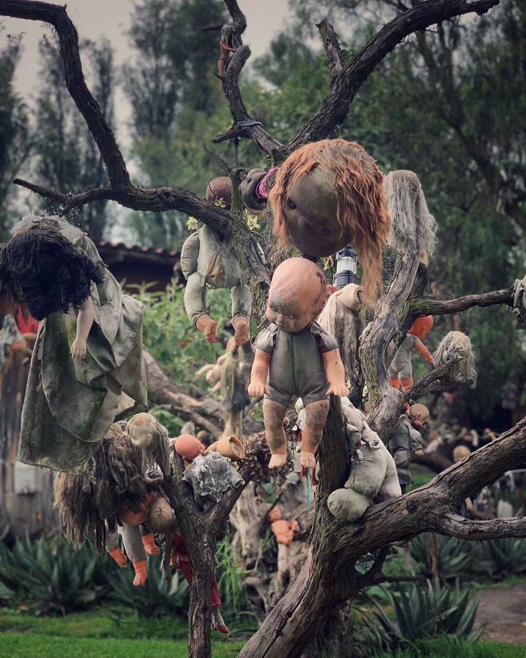Cuenta la leyenda que hace mucho tiempo una niña murió ahogada cerca de la pequeña isla de los canales de Xochimilco. A partir de ese momento, Julián Santana Barrera, quien habitaba el lugar, comenzó a colgar muñecas para calmar el espíritu de la niña. El hombre vivió aislado hasta el 2001 ya que falleció de un infarto. El lugar es simplemente aterrador y sólo los atrevidos la visitan.