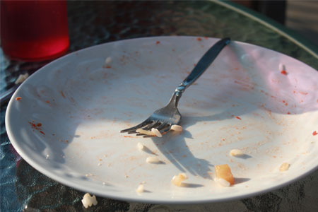 Aunque la comida te resulte deliciosa no se te ocurra dejar el plato limpio porque será interpretado como que no te han servido suficiente comida. Así que olvídate de limpiar el plato con el pan sobrante.