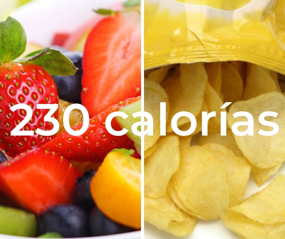 A continuación les dejaremos una comparativa de alimentos que tienen las mismas calorías, pero ojo, comerlos no causa el mismo efecto en el cuerpo.