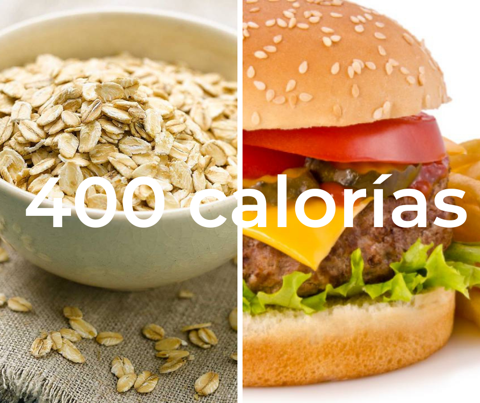 Si comes una hamburguesa con queso normal en cualquier establecimiento de comida rápida, tu alimento tendrá aproximadamente 400 calorías, al igual que 100 gramos de avena.
