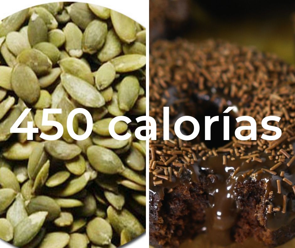 Las semillas de calabaza tienen una gran cantidad de calorías, pues 100 gramos contienen más que las donas de chocolate, que tienen 450 mientras que las semillas 520.