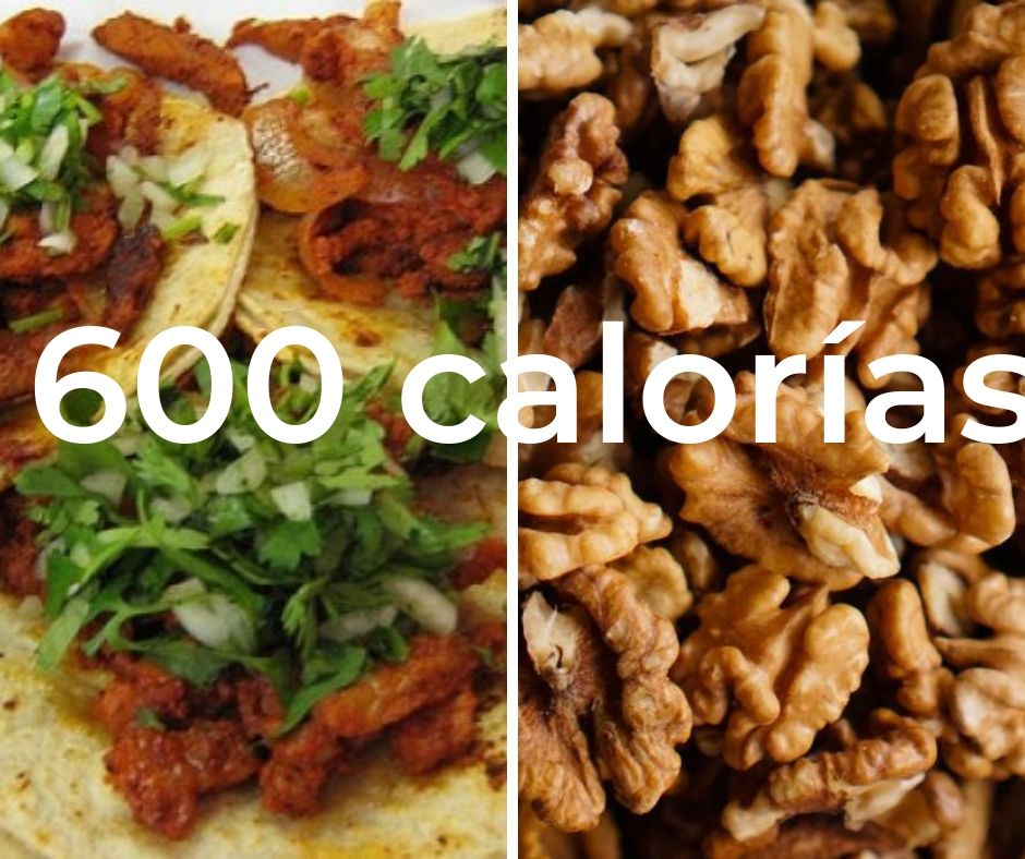 Una orden de tres taquitos con todo (incluyendo doble tortilla) tiene las mismas 600 calorías que 100 gramos de nueces.