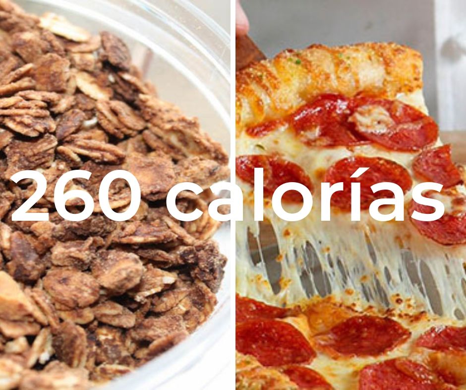 Sin contar la leche, un plato de cereal integral tiene las mismas calorías que una rebanada de pizza de queso, que son 260 calorías.