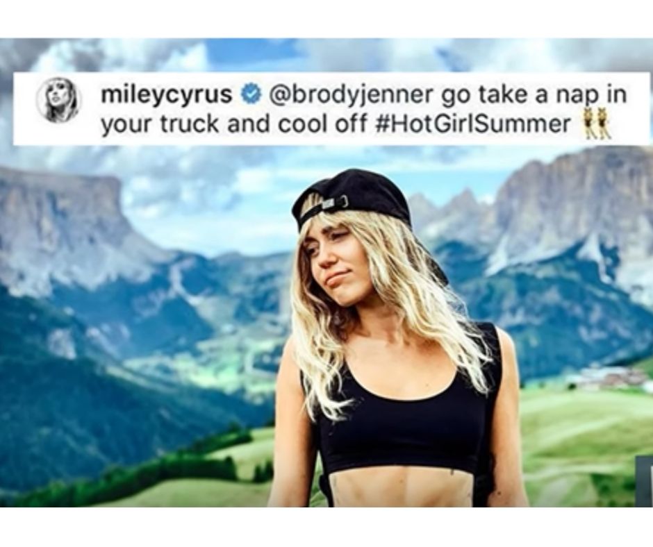 Mientras sus comentarios acumulaban ‘me gusta’, Miley Cyrus no dudo en contestar al ”ataque” con un contundente “Ëchate una siesta en tu furgoneta y relájate”, respondía la cantante junto al hashtag #HotGirlSummer (chica guapa de verano), que es el piropo que le dedicó a su ex cuando compartió una imagen en la que sale junto a Miley.