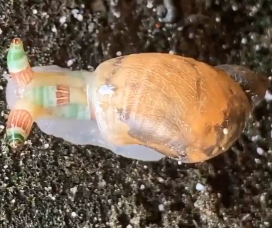 Últimamente, en las redes sociales se puede observar un caracol con colores extravagantes, pero detrás de sus colores excéntricos se encuentra una triste situación: el caracol se encuentra invadido de parásitos.