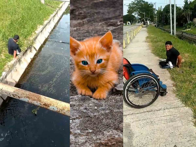 El heroico acto de este deportista fue grabado en vídeo, donde se puede ver cómo el hombre se baja de su silla, se desliza por una pendiente y con esfuerzo toma al asustado gatito y lo pone en el pasto. Después el animal sube corriendo y cruza la calle alejándose del peligroso lugar.