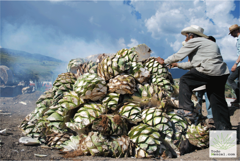 Para el tequila lo colocan en un horno de vapor y para el mezcal se cuece por hornos con madera (de ahí su distintivo sabor ahumado).