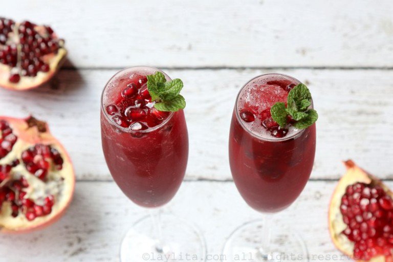 En esta temporada del año, la fruta que debes aprovechar es la granada pues son perfectas para preparar postres y cócteles. Muchos requieren jugo de granada, por suerte, muchos supermercados venden jugo de granada que se puede usar para estas recetas.