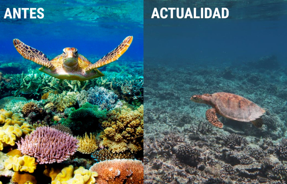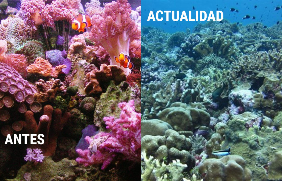 Gabriel Grimsditch de la división de ecosistemas marinos del Programa de las Naciones Unidas para el Medio Ambiente explica que cuando los corales se “estresan” por factores como la contaminación, o el cambio de la temperatura del agua, expulsan a las microalgas de su interior, y se blanquean. Es decir, gracias al cambio climático se están destruyendo los arrecifes de coral que tenemos en el planeta.