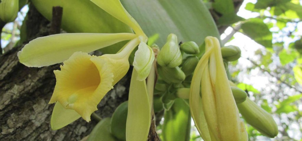 La vainilla es una orquídea que no se utiliza como ornamento sino como parte fundamental de la cocina mexicana y mundial. Su nombre viene desde la época de la colonia y se lo dieron los españoles por su parecido a la vaina de las espadas. Después de la conquista, este fruto fue llevado a lugares lejanos como Madagascar, en África, para multiplicar el volumen de producción.