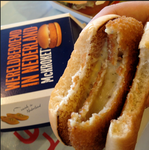 Es como una croqueta hecha con carne guisada y queso, que claramente se encuentra entre dos panes de McDonald`s.