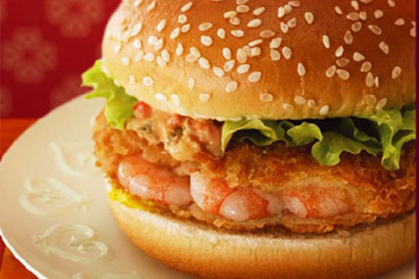 Es una hamburguesa de camarones porque en Japón las hamburguesas no tienen que ser siempre de carne.