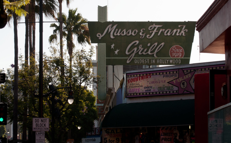 Uno de esos lugares reales es el famoso asador de Musso & Frank, el restaurante más antiguo de Hollywood, que tiene 100 años de historia. Por ejemplo, ahí sigue estando la mesa reservada para Charles Chaplin, que comía a diario junto a la ventana.
