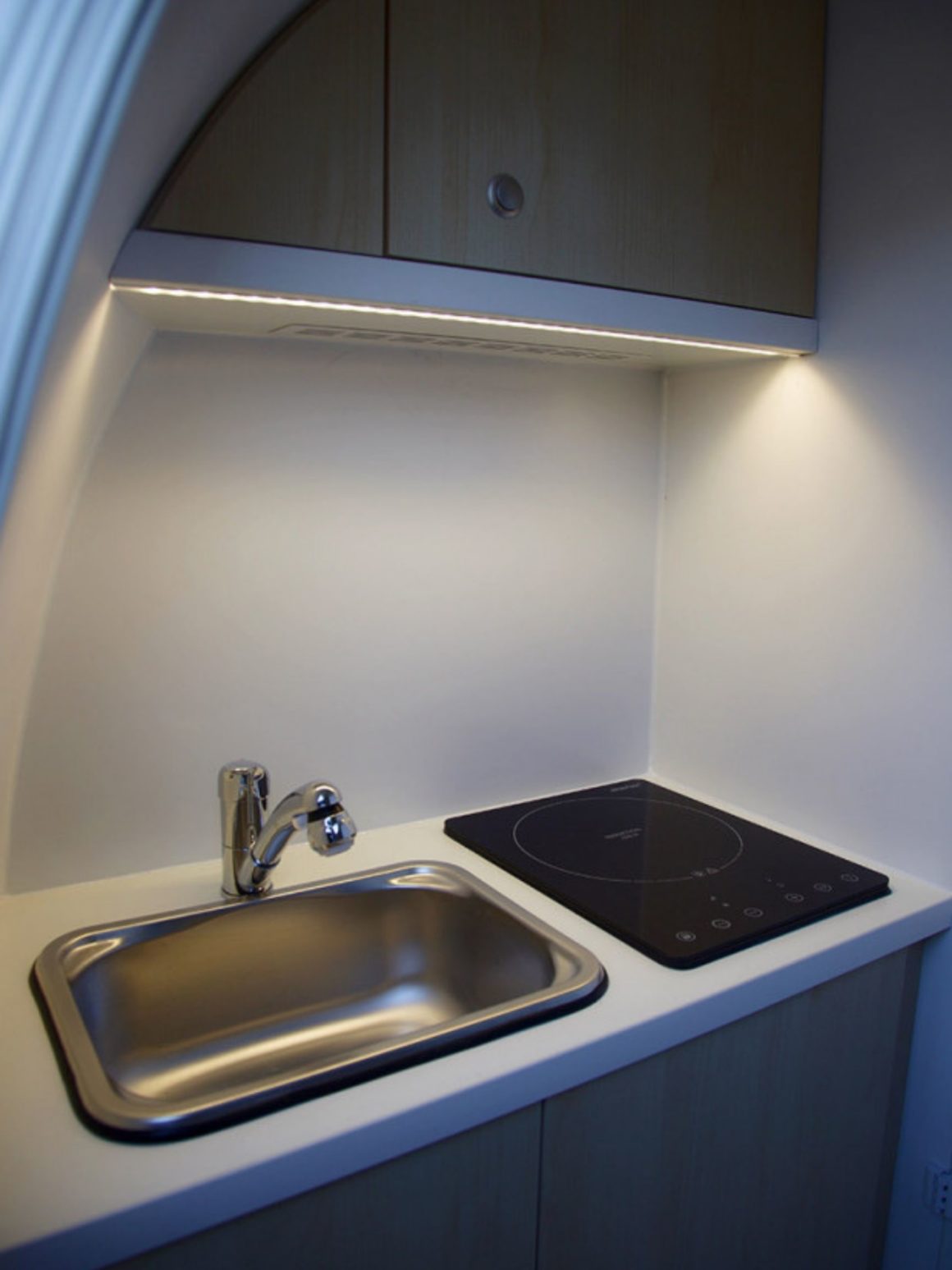 La cápsula tiene una forma ovalada y puede ser transportado por aire, remolcado e incluso puede ser jalado por un animal; su peso es de 1,500 kilogramos, mide 4.45 metros de largo, 2.41 metros de ancho y 2.50 metros de altura, su capacidad de hospedaje es para dos personas y se adapta a cualquier clima en el mundo.