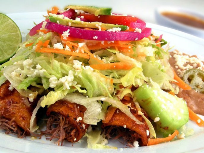 También conocidas como enfrijoladas, el frijol se muele y se guisa con hojas de aguacate. Posteriormente se integran las tortillas, ya fritas en aceite, se cubren completamente y se sirven con queso, crema y aros de cebolla. Se cree que el lugar de origen de este exquisito platillo es el estado de Oaxaca.