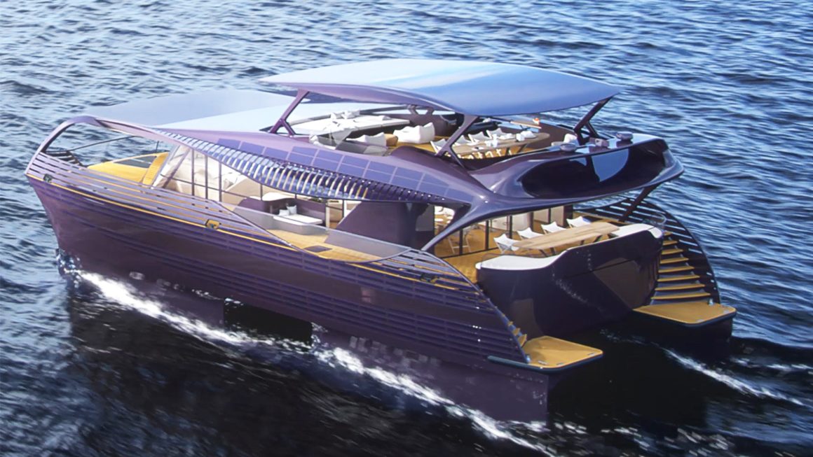 Este yate que es impulsado únicamente por energía solar, tiene un alcance ilimitado, siempre que el Sol no deje de brillar. El vehículo acuático tiene entre sus instalaciones alberca, cabinas para huéspedes y bar.