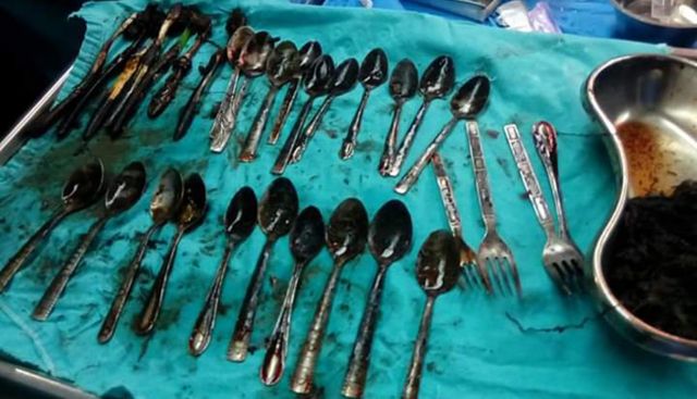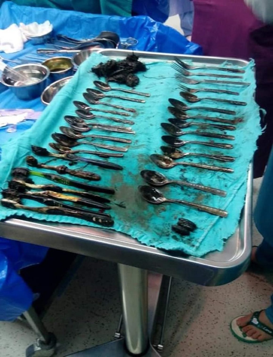 Un equipo médico del hospital universitario de Mansurá, en el norte de Egipto, se encontró con 20 cucharas, cuatro tenedores, cepillos de dientes y hasta joyas en el estómago de un joven de 21 años con una enfermedad mental que llegó al centro tras meses de dolores.