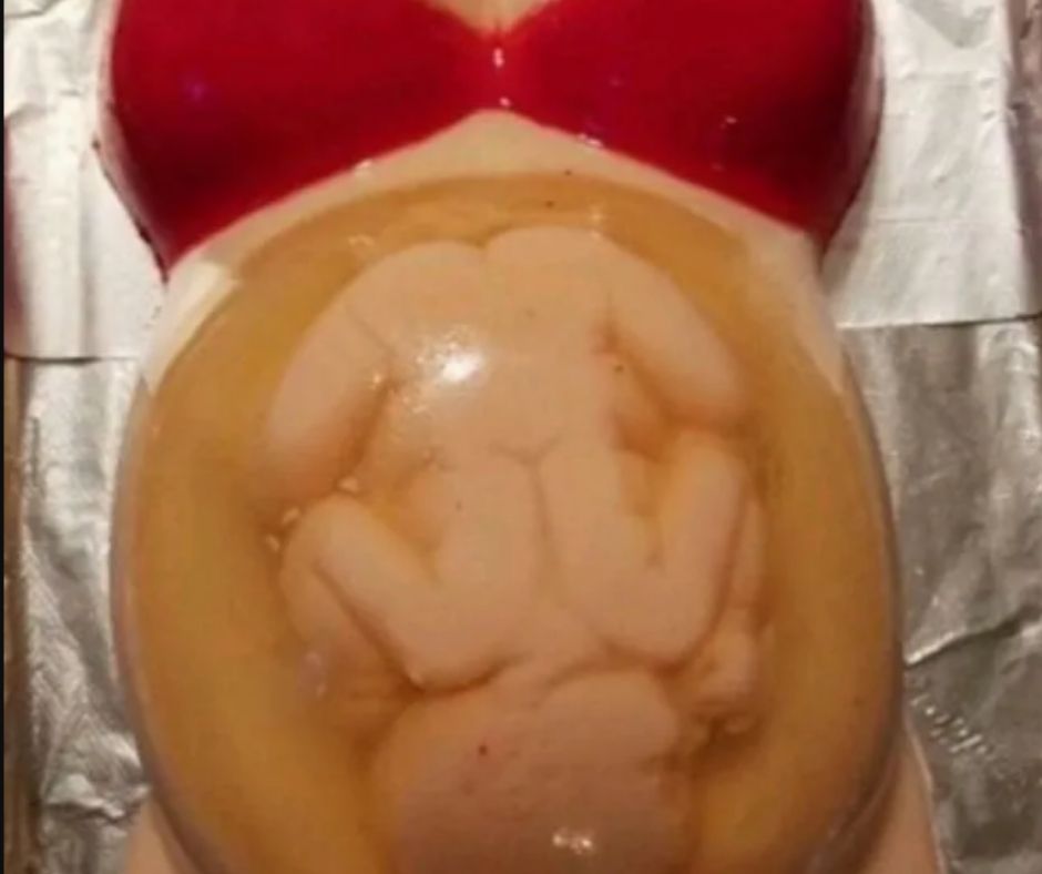 Nunca, en ningún baby shower, he visto un pastel de feto, y sinceramente espero no verlo ¿cómo se supone que cortes y te comas a un bebé? Muy retorcido y desagradable.