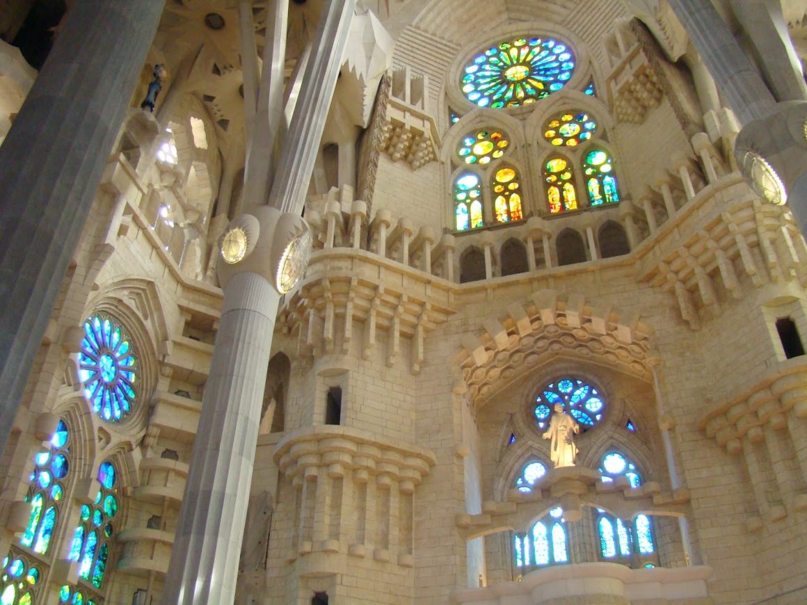El interior se asemeja a un gran bosque, el altar parece que está suspendido por pura luz y las fachadas laterales son tan diferentes entre ellas que parecen construcciones independientes, claro, debía ser así, pues fue pensada por un gran genio.