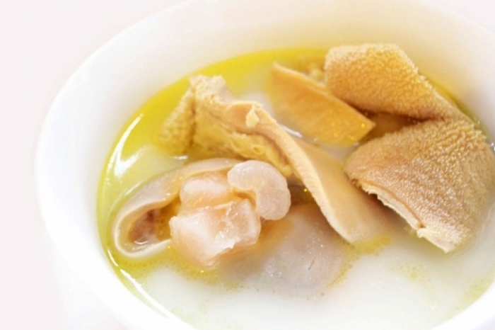 El khashi, el guiso que los georgianos juran como una cura de resaca. Sus tres principales ingredientes son: Intestinos de vacas, pies de terneros y leche.