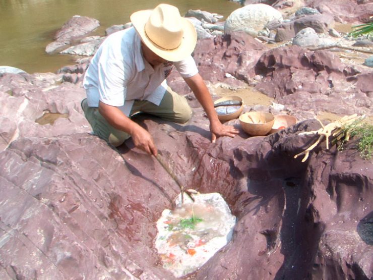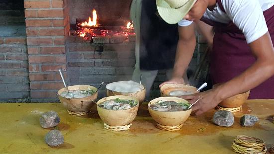 El caldo se prepara en piedras que designan los ancianos chinantecos.