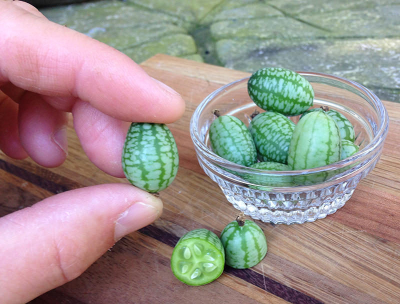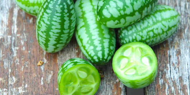 El cucamelón es una fruta de origen mexicano muy poco conocida en el país, sin embargo, es la fruta de moda en Estados Unidos, pues están acompañando sus ensaladas con esta peculiar mini sandía que sabe a pepino agrio.