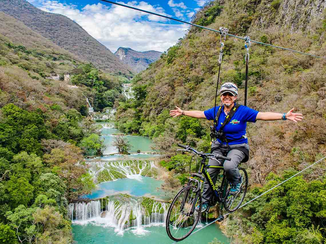 En la isla de Bohol, Filipinas, se encuentra este peculiar paseo a en bicicleta. Además de pedalear a 50 metros de altura, el recorrido va por 270 metros de largo. Por supuesto, la bicicleta va sujeta a un gancho de seguridad, mientras que el sujeto lleva arnés.