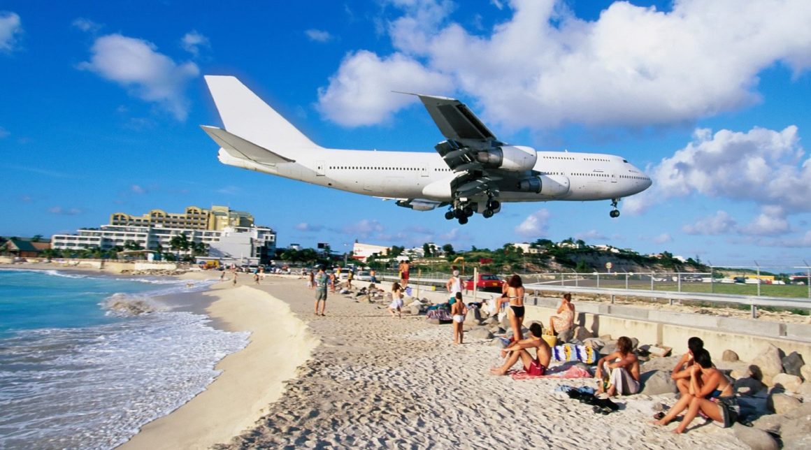 En este lugar se ubica un aeropuerto a pocos metros de la playa, por lo que no debe sorprenderte ver pasar uno a escasos metros de tu cabeza.