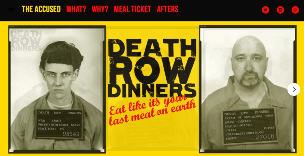 Otra opción para sentirte como un condenado a muerte es el Death Row Dinner‘, un restaurante del este de Londres que intentó promocionar la experiencia del corredor de la muerte ofreciendo una última comida de un condenado. La promoción se hizo con fotos policiales de verdaderos presos ejecutados y con el menú colgando de sus cuellos. A la mayoría de la gente no le gustó tanto esta idea, pero a algunos les pareció genial.
