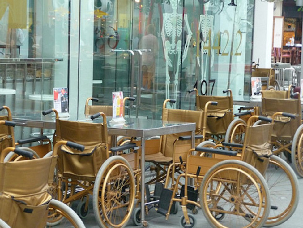 Si por alguna extraña y desconocida razón amas los hospitales el restaurante llamado Clinic te va a encantar, pues ahí puedes comer sobre la fría mesa de operaciones de un quirófano mientras te encuentras sentado en una silla de ruedas. Este lugar en Singapur inclusive te sirve las bebidas en bolsas de suero.