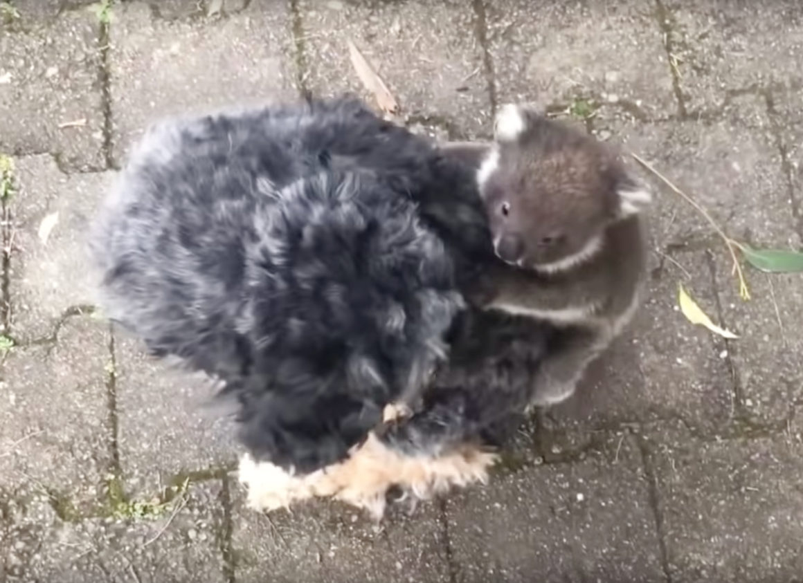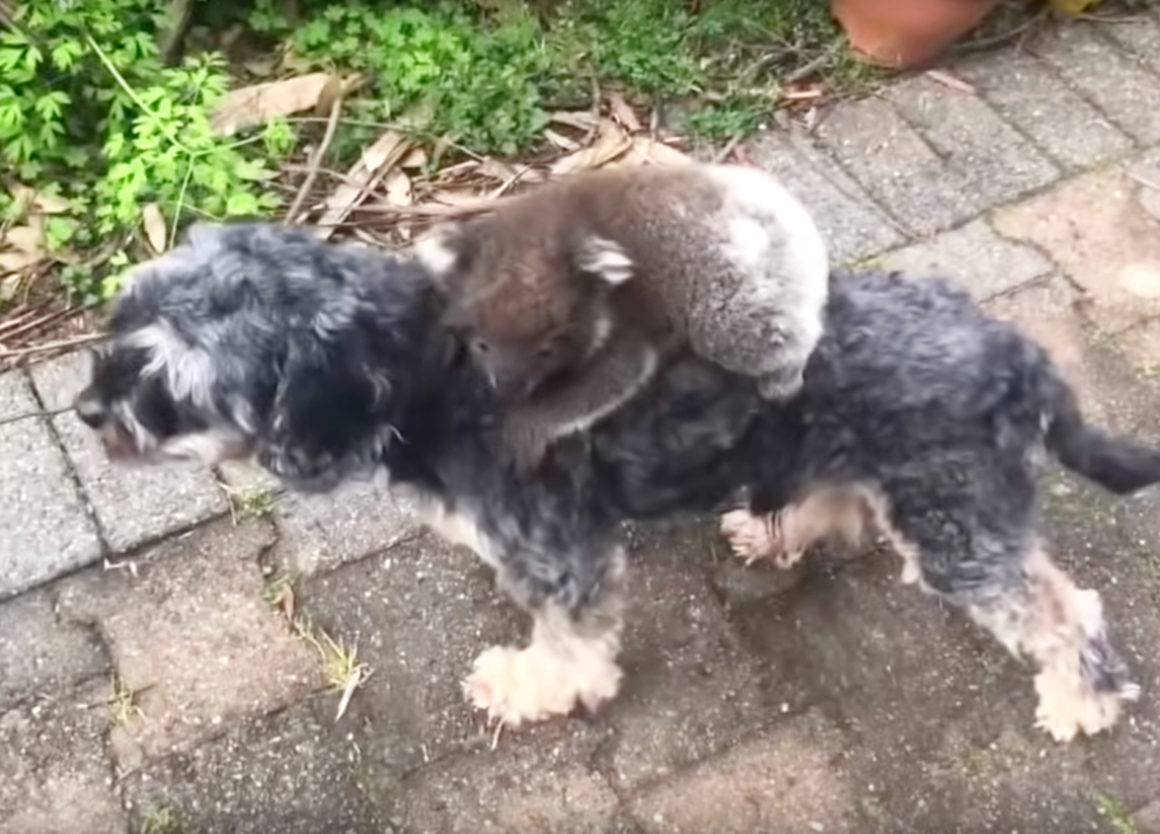 Esta es la historia de Henry, quien al salir a su patio encontró una escena maravillosa. ‘Tony’, su mascota, estaba quieto, intentando no despertar a un tierno koala bebé que se acurrucó en su pelaje.