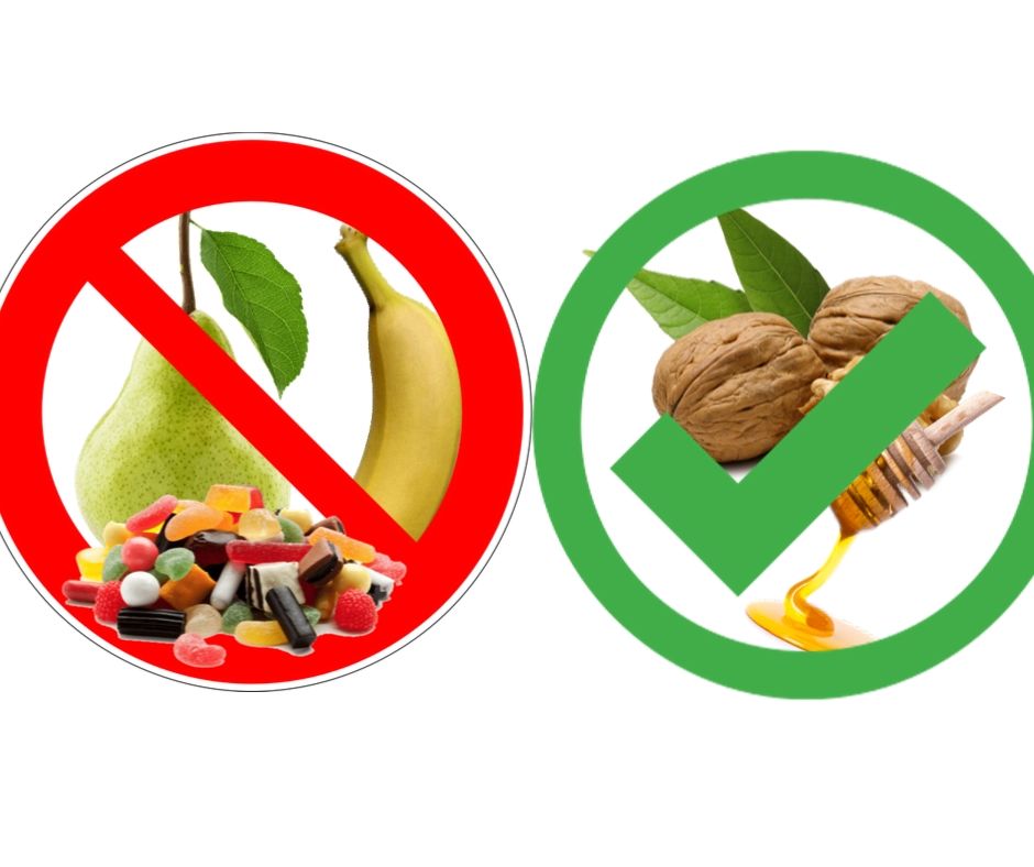 La mayoría de las frutas (excepto las que mencionamos arriba) contienen fructosa, que puede ser transformada fácilmente en glucosa. Además, contiene mucha agua que permite nutrir y depurar nuestro organismo.