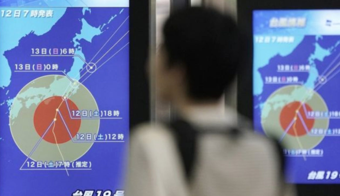 Las pantallas en la estación de tren Shinjuku de Tokio muestra a los pasajeros información sobre el tifón.