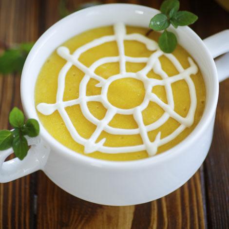 Si la fiesta que piensas organizar es más “formal” puedes empezar haciendo una crema de calabaza, pues sus colores son representativos de la época. Para que se vea decorada con la ambientación adecuada, solo debes decorarla con una telaraña de crema espesa. Para hacerlo puedes colocar la crema en un biberón y dibujar tres círculos. Posteriormente con un palito trazas las líneas.