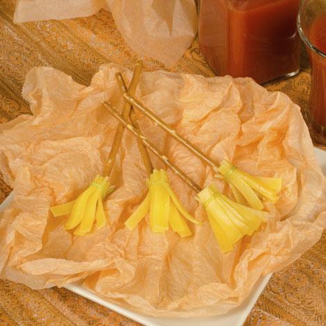 Un buen bocadillo pueden ser unas escobas de brujas hechas con queso, para realizarlas necesitas un poco de queso y unos palitos de pan. Únicamente debes cortar el queso en tiritas y con una tira “amarrar” el queso con el pan.