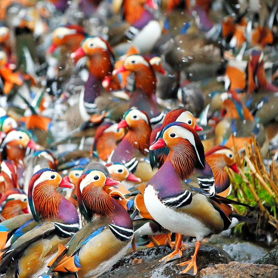 El pato mandarín, fue considerado ‘ave ornamental’ durante siglos, por ello, en su zona original está disminuyendo y se considera parcialmente en peligro de extinción. Sin embargo, gracias a que reservas naturales lo han adoptado, la parvada se encuentra segura en general.
