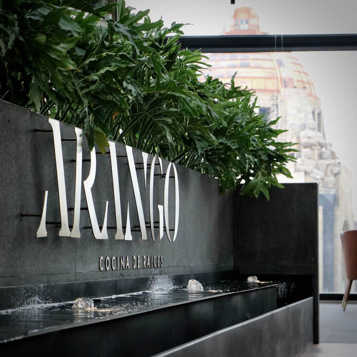 Arango se autodenomina una cocina de raíces pues utiliza ingredientes de diferentes estados y temas de alta cocina. El proyecto está a cargo de Alejandro Cuatepotzo, un chef poblano que ha desfilado por algunos de los más afamados restaurantes de la ciudad.