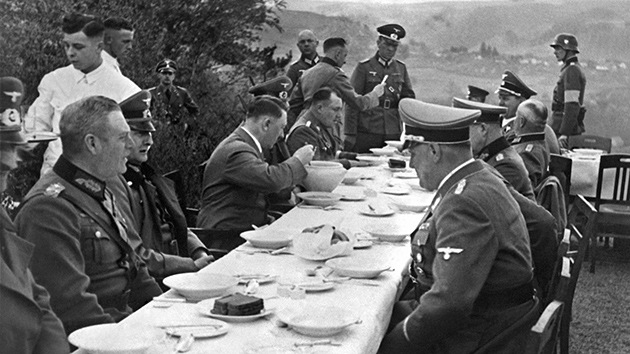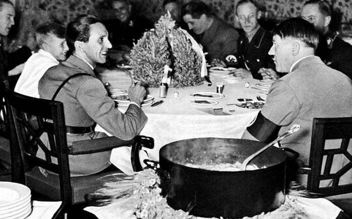 Las mujeres que trabajan cercanas a Hitler, incluyendo Margot, han asegurado que él era vegetariano pues dejó de comer carne después de visitar un matadero porque la carne le recordaba cómo chapoteaban sus chanclos en la sangre fresca. También era muy goloso y de vez en cuando se daba auténticos atracones de chocolate a pesar de tener problemas intestinales. Pero luego se ponía a dieta severa, ayunaba, y en una semana perdía un montón de kilos.