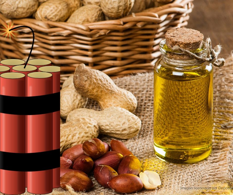 A pesar de que posiblemente nunca lo habrías imaginado, la dinamita está confeccionada con cacahuates. El aceite que produce tiene la propiedad que al ser procesado puede generar glicerol, que a su vez es empleado para fabricar nitroglicerina, uno de los elementos de la dinamita.