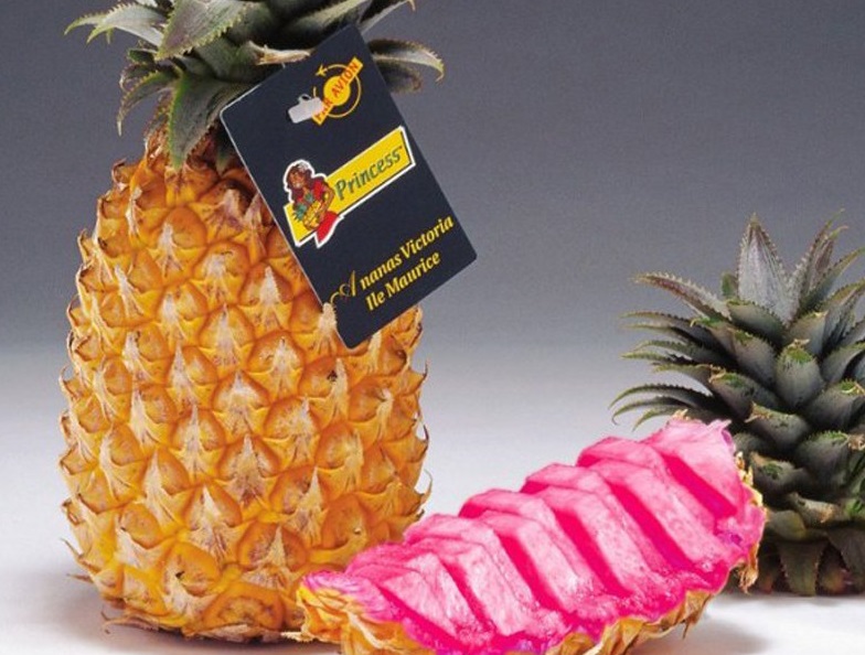 “La nueva piña de Del Monte ha sido genéticamente modificada para producir niveles más bajos de enzimas que ya están en la piña convencional -que convierten el pigmento rosa licopeno en pigmento amarillo beta caroteno. El licopeno es el pigmento que hace a los tomates rojos y las sandías rosadas, y que es consumida comúnmente y en forma segura.”