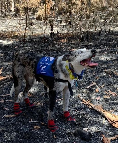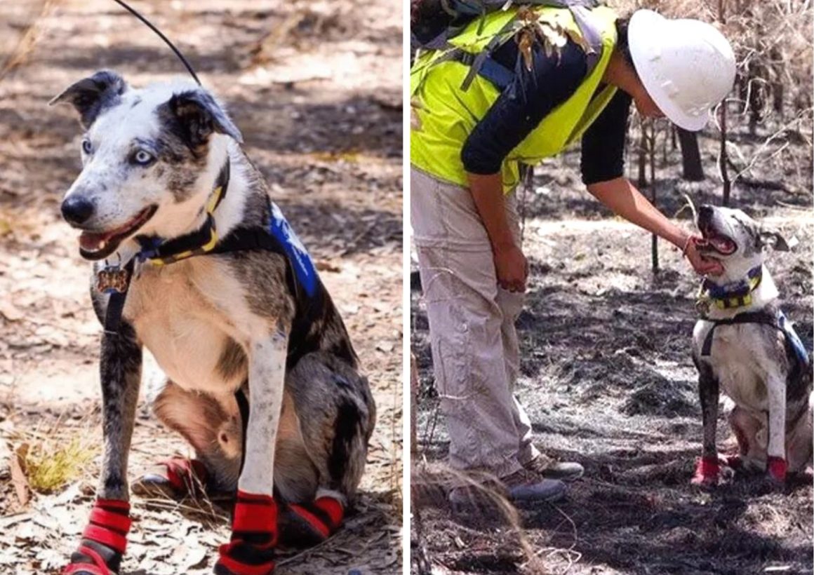 Tras los incontrolables incendios en Australia, este pequeño de nombre Bear, tiene la difícil y peligrosa tarea de detectar koalas sobrevivientes en los incendios forestales, para rescatarlos. Sus fotos se viralizaron en redes sociales y ya es un héroe a nivel mundial.