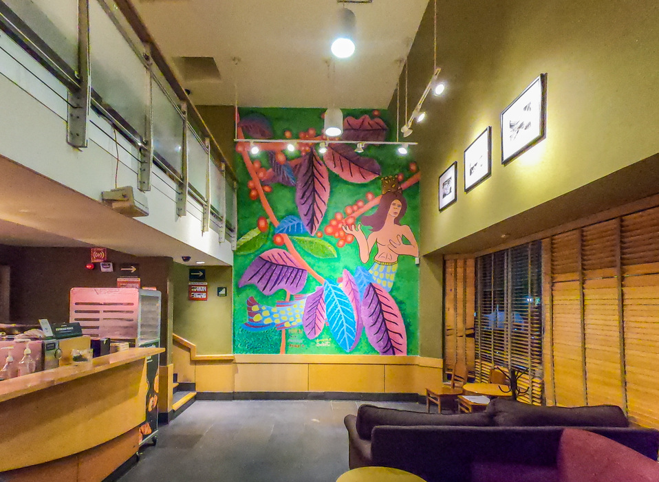 Según Starbucks, el mural pintado por los artistas con Síndrome de Down, representa el camino que recorre el café, desde el cultivo de la semilla, hasta la planta que se transforma en la taza de café.