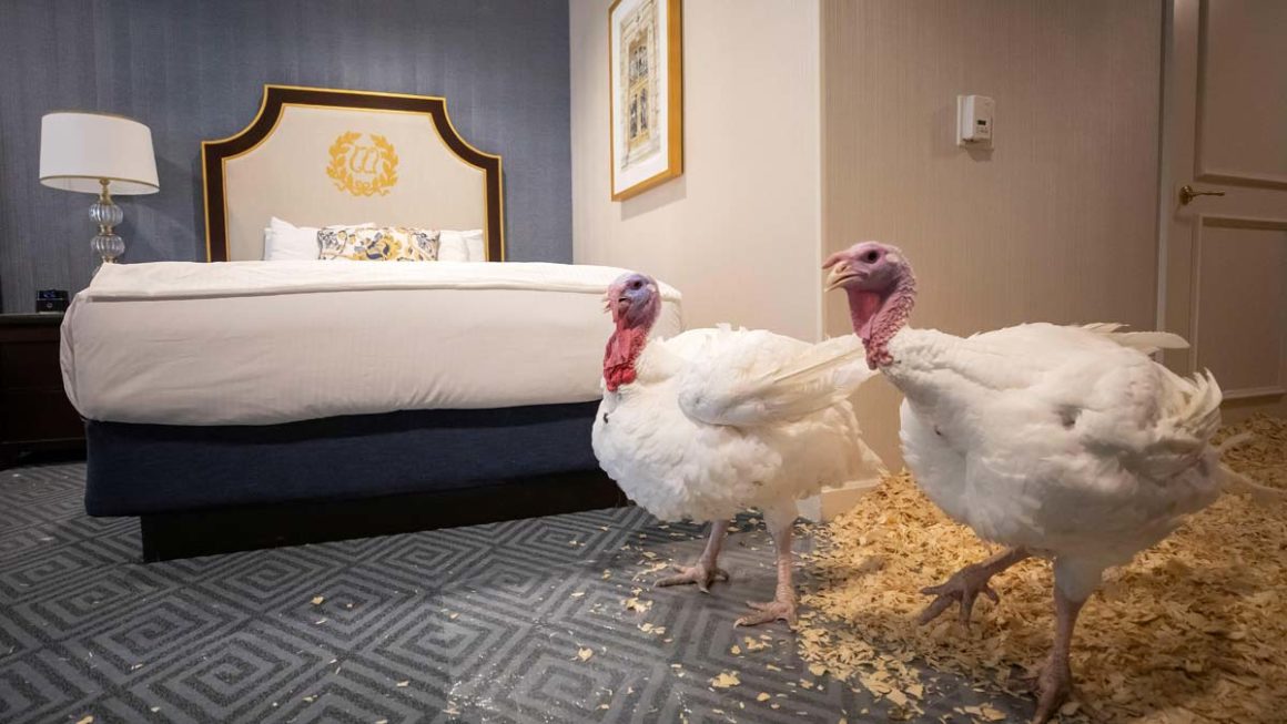 Los afortunados pavos que se salvaron de ser comidos durante la cena pasaron una noche en el hotel Willard Intercontinental, en una habitación con un costo de 8 mil 440 pesos la noche. Además, el granjero que los cuida asegura que ambos pavos disfrutan los clásicos de rock y les gusta jugar fútbol.